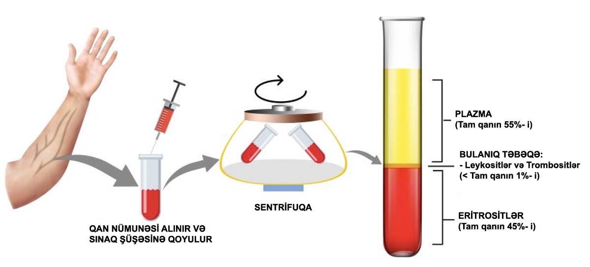 Qan sentrifuqaya yerləşdirilir. Bu aparat çox sürətlə fırlanır və qan komponentlərinin ayrılmasına səbəb olur. Ayırma prosesi təxminən 15 dəqiqə çəkir.